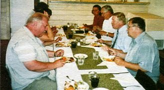 Kesällä 2005 Säynätsalon edustuksellinen terävä kärki oli kutsunut kaupunginjohtaja Markku Anderssonin työlounaalle Juurikkaan. Kuvassa Säynätsalo-seuran puheenjohtaja Mauri Toikkanen (vasemmalla) ja häntä vastapäätä aluelautakunnan ja samalla Säynätsalon Työväenyhdistyksen puheenjohtaja Pentti Tossavainen, ja seuraavina kaupunginjohtaja Markku Andersson sekä Juurikkaan Työväenyhdistyksen vuokralaiseksi 70-luvulla sijoittuneen Jyväskylän Veneseuran kommodori Risto Pynnönen vaimoineen. Myöhemmin STY:n johtoon noussut Ahti Ruoppila jää kuvassa Toikkasen taakse.