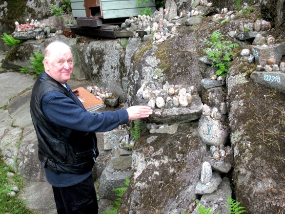 Mauri Toikkanen kotipihallaan 2022. Kuva on otettu juttuun kivisestä vaikuttajagalleriasta. Se on luettavissa toisaalla tällä sivustolla.