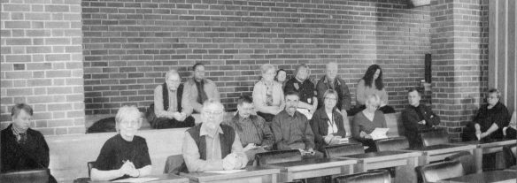 Säynätsalo-Seuran perustamiskokous pidettiin Mauri Toikkasen johdolla Kunnantalon valtuustosalissa 2004. Oikealta eturivissä Ritva Saarinen, Janne Vilkuna, Pirjo Sojakka, Mirja Helin, Kauno Lehtomäki, Olavi Mäenpää, Matti ja Mirja Rautjoki, Juhani Niinistö. Seuraavalla rivillä oik Ilona Ilmola, Kaarlo Kaltiala, Eija Sälekivi, Salme Punkka, Keijo Meronen. Takarivissä Tanja ja Erkki Peuranen. Kuva: Säynätsalon Sanomat.