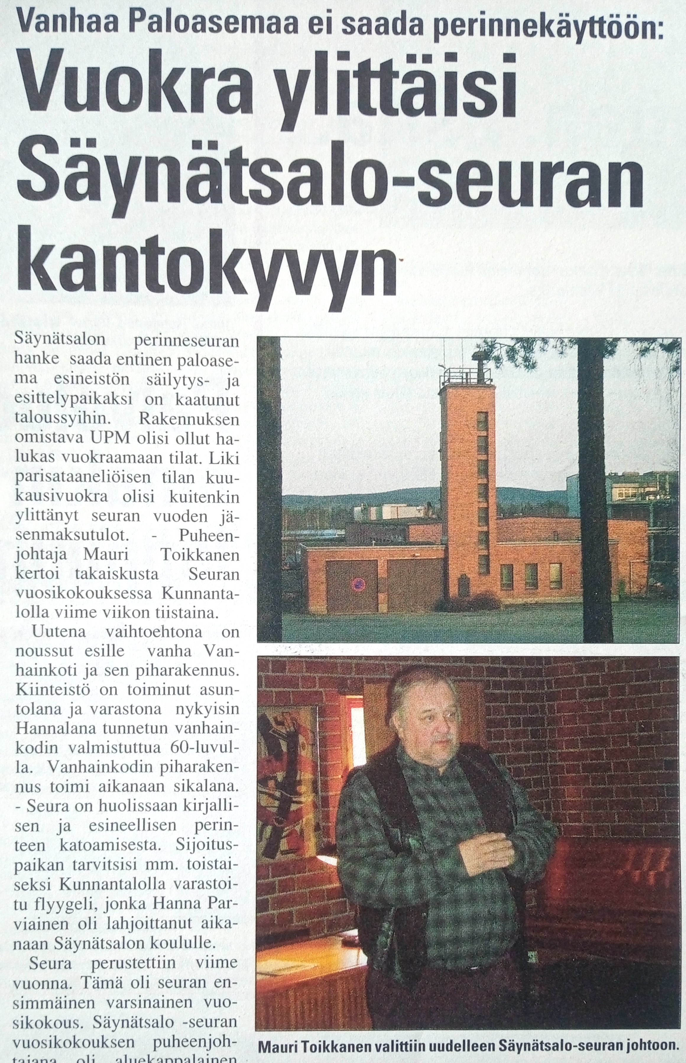 Tämän haastattelukoosteen julkaisin Säynätsalon Sanomissa 2021 pitkäaikaisen palopäällikön, Työväenyhdistyksen puheenjohtajan ja Säynätsalo-seuran perustajan 75-vuotispäiväksi. JN