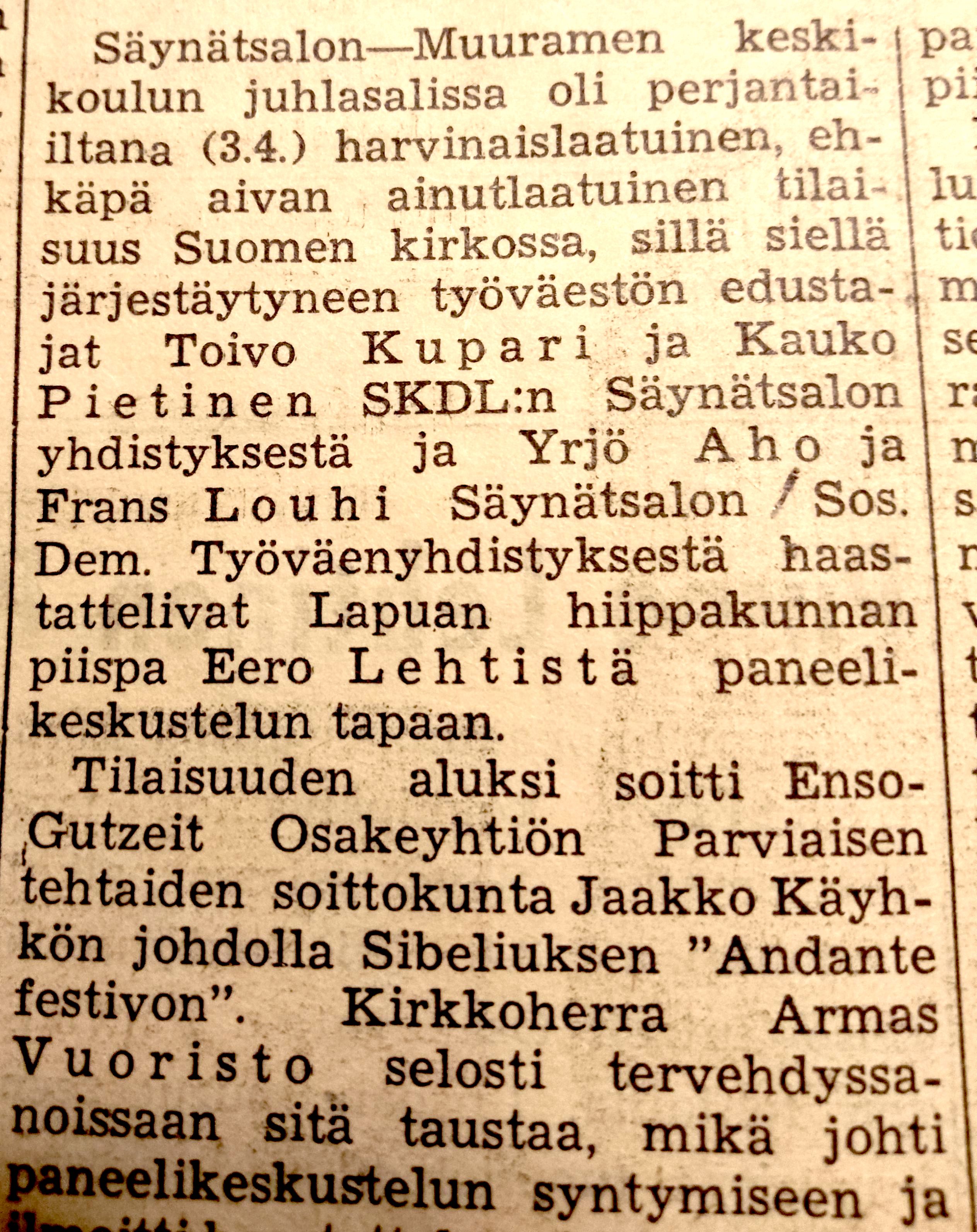 Tässä on paikallaan kerrata hieman seurakunnan ja tehtaan suhdetta. Valpion jälkeen kirkkoherraksi tullut Teo Nuottamo oli konservatiivispainotteinen ja henkisesti lähellä virkailijakuntaa.