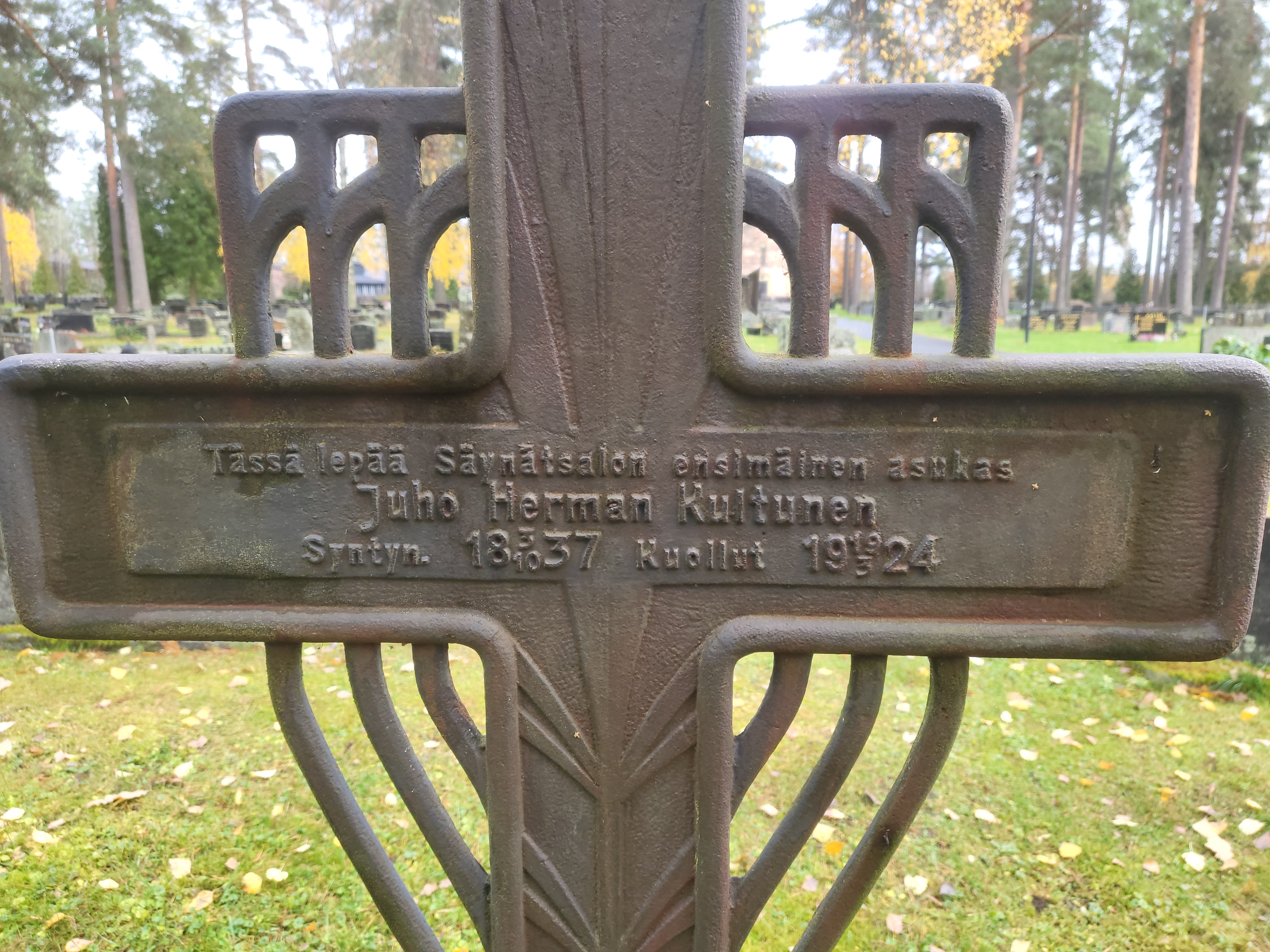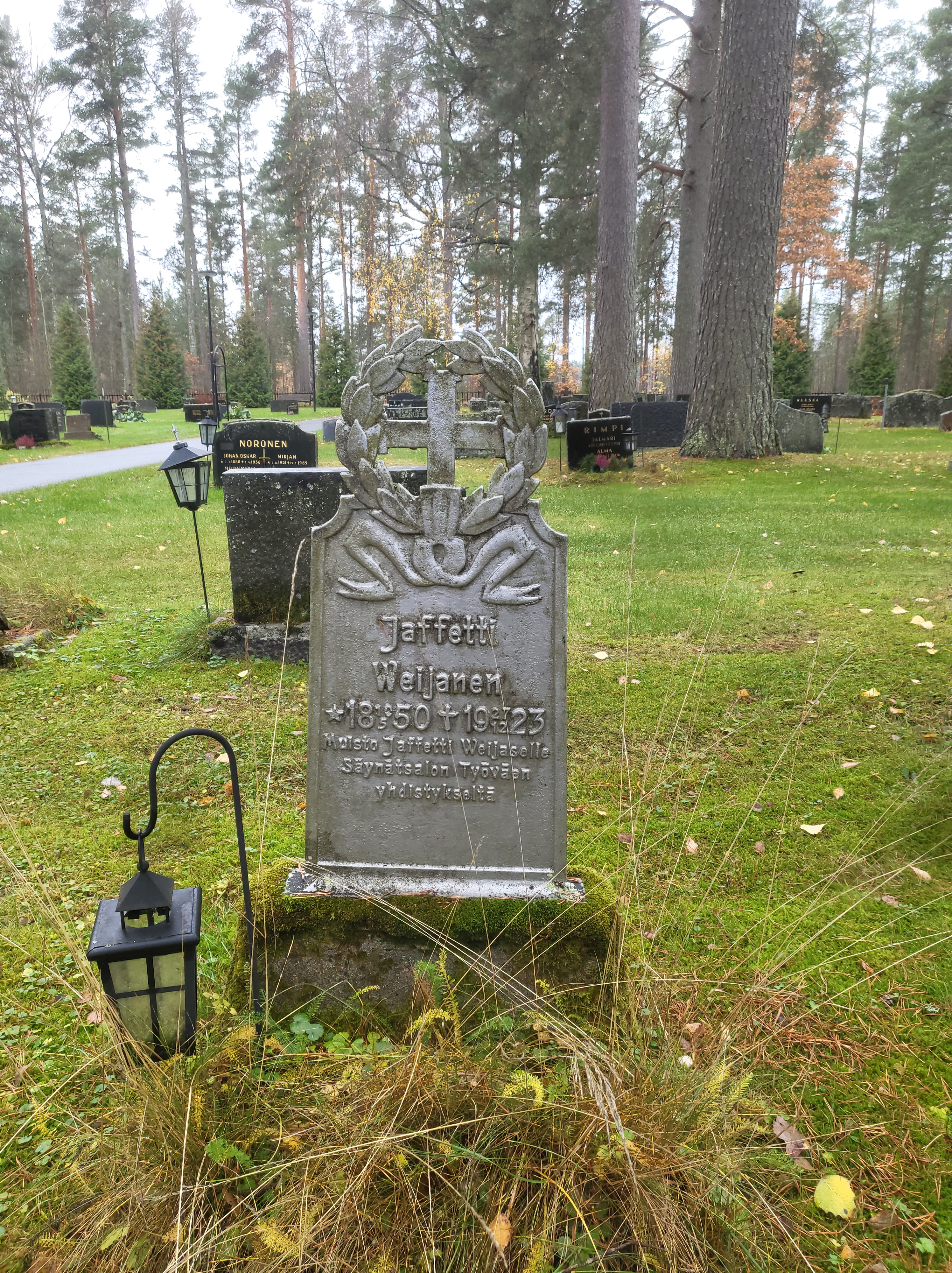 Jaffetti Weijanen, 1850-1923 oli Säynätsalon Tyväenyhdistyksen perustajia. Hautaristin on pystyttänyt STY. Se on ehkä suojeltu, kun on säilynyt. Vieressä pahoin ruostuneesta ja rikkoutuneesta rististä näkyy vielä nimi Pastinen.